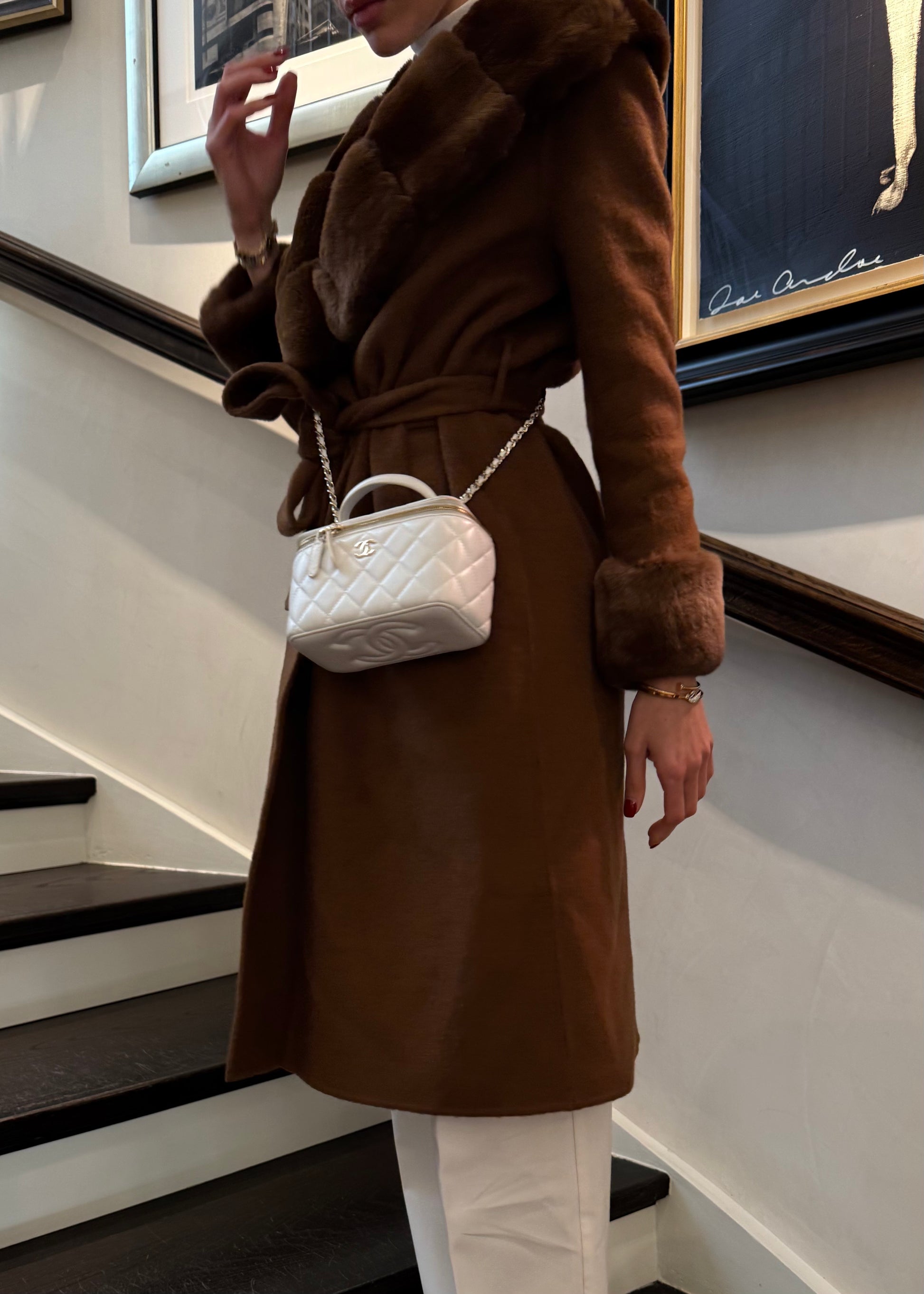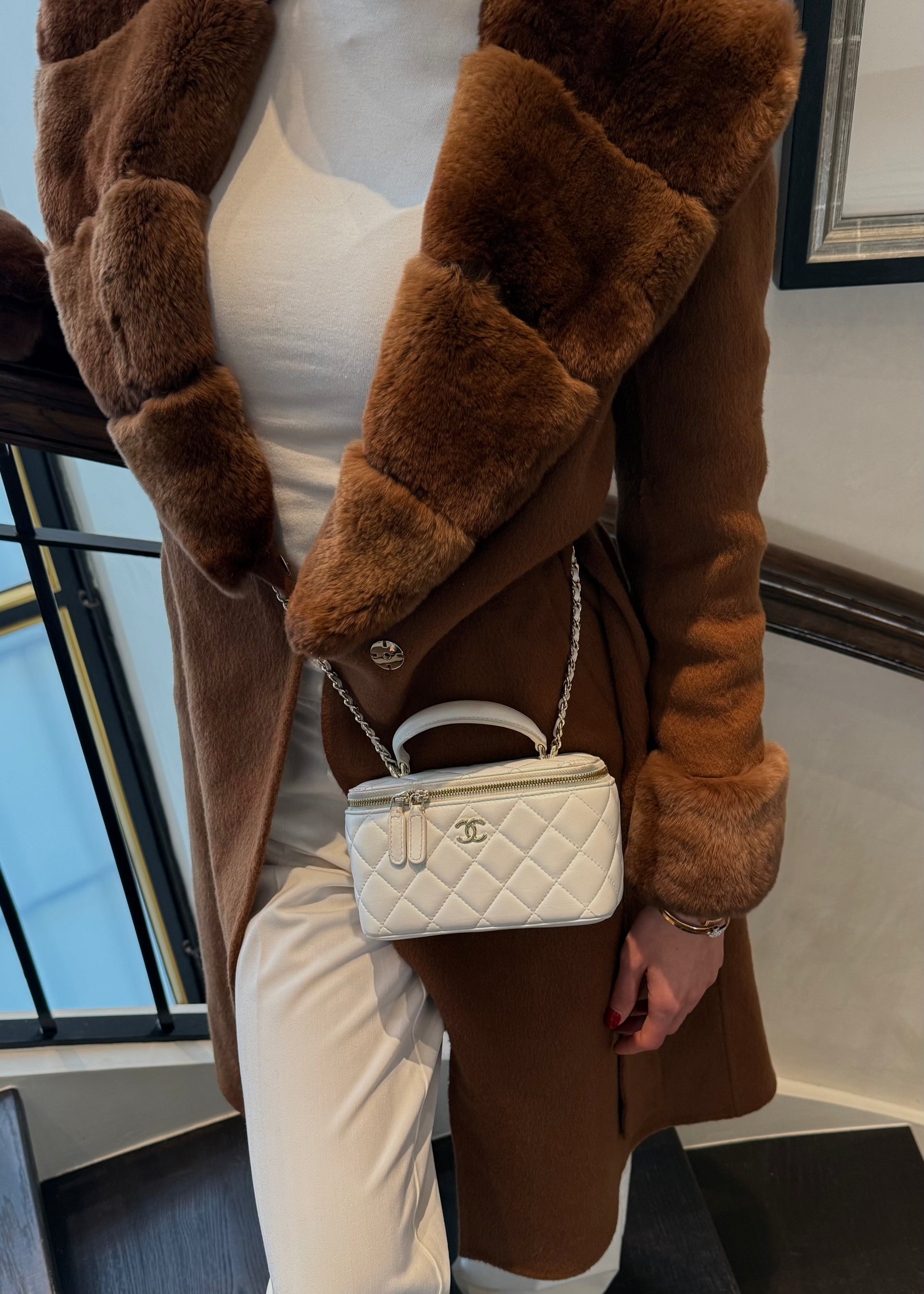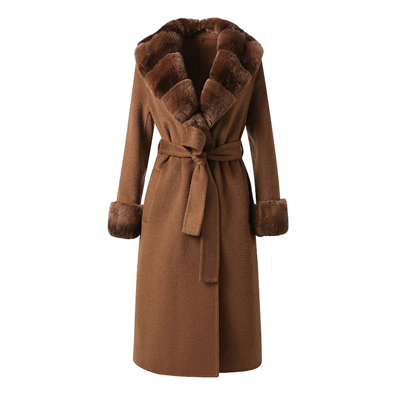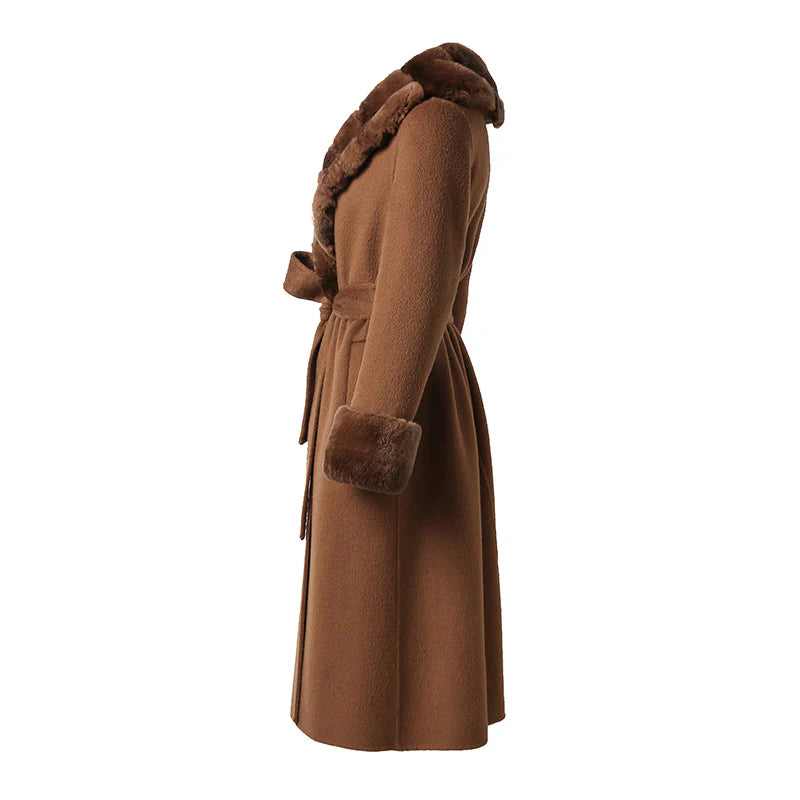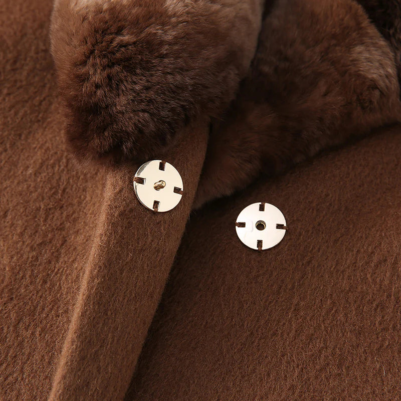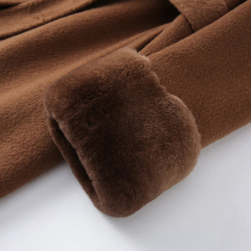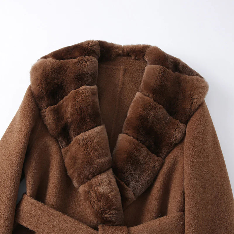 The LIRIAN coat combines elegance and comfort in perfect harmony. Made from 100% Merino wool and adorned with luxurious Rex rabbit fur, it blends warmth, lightness, and exquisite details into one unique design. Its tailored silhouette creates an elegant shape, while the Rex fur collar and cuffs add refined accents. With functional pockets and premium craftsmanship, this coat is an ideal choice – for both everyday wear and special occasions.