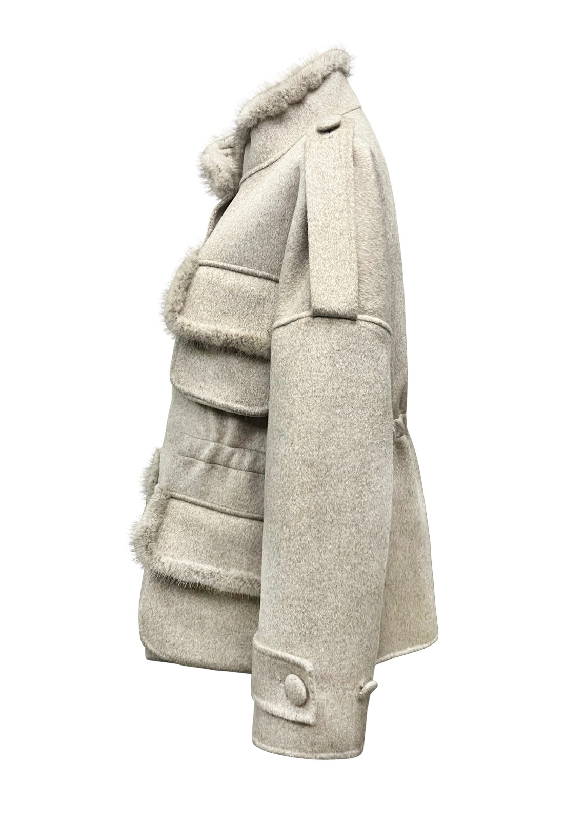 Where everyday life meets luxury – the LORENT coat strikes the perfect balance between casual and elegant. Crafted from 100% Merino wool and refined with genuine mink trim, it keeps you warm without compromising on style. The relaxed silhouette, practical pockets, and sophisticated details make it a versatile piece that works anywhere – whether in the city, on the go, or as a statement in your daily wardrobe.