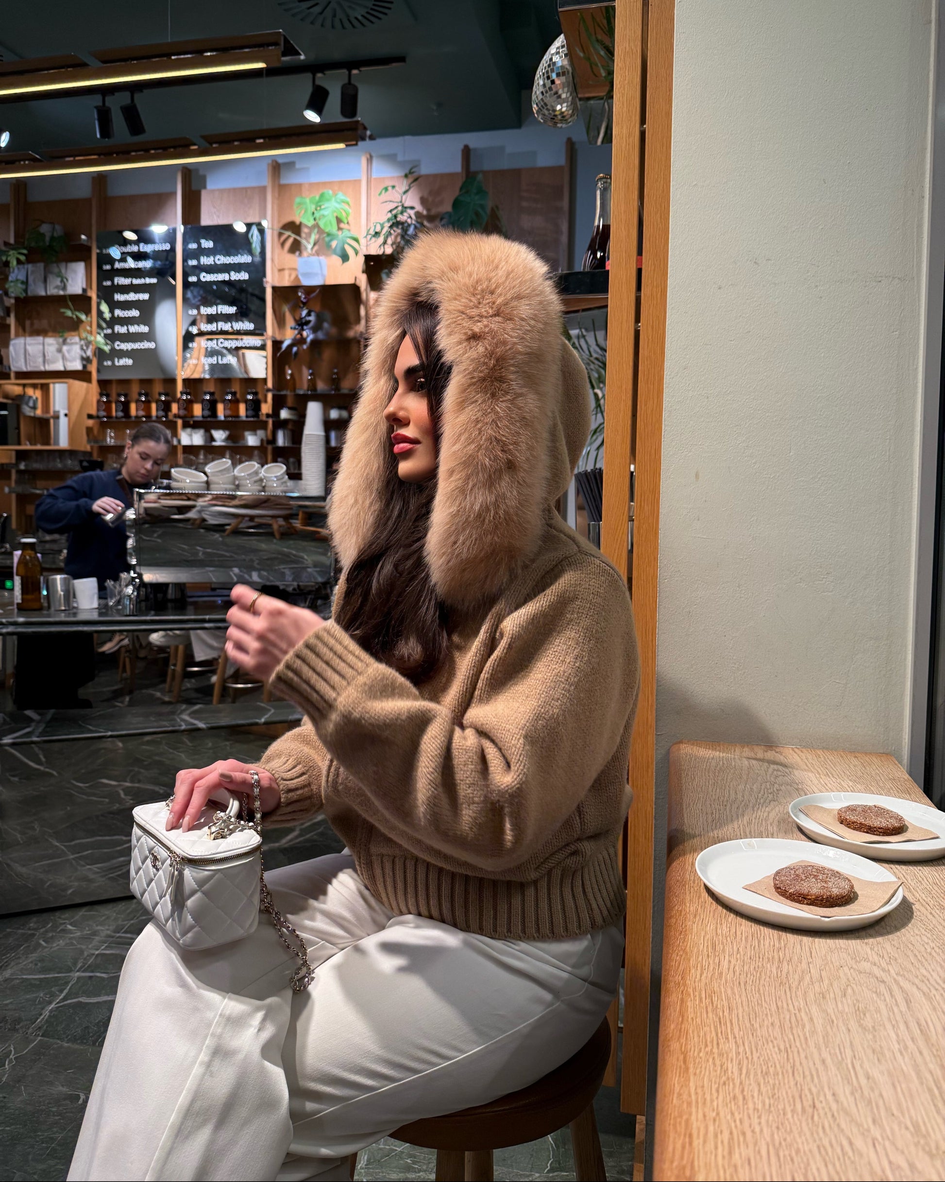 Nach dem Auspacken den Mantel einfach für ein bis zwei Tage aufhängen – so entfaltet das Fell wieder seine volle, natürliche Fülle. Tipp: Wenn’s schnell gehen soll, kannst du auch mit kalter Luft leicht drüber föhnen.